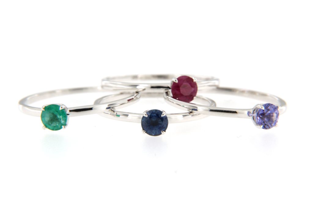 (Français) SOLITAIRE OR GRIS SAPHIR, RUBIS, EMERAUDE, TANZANITE